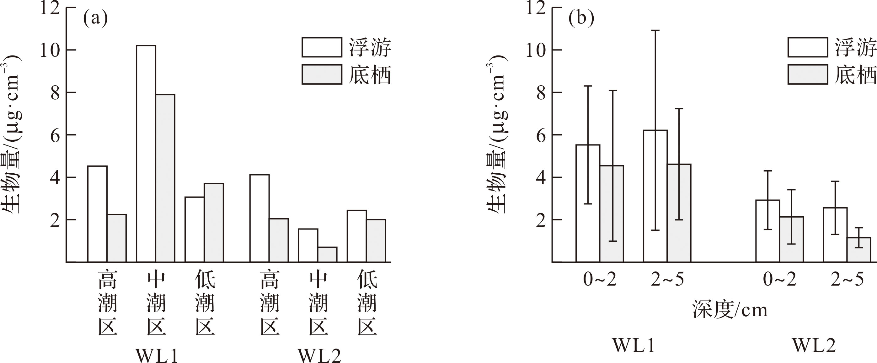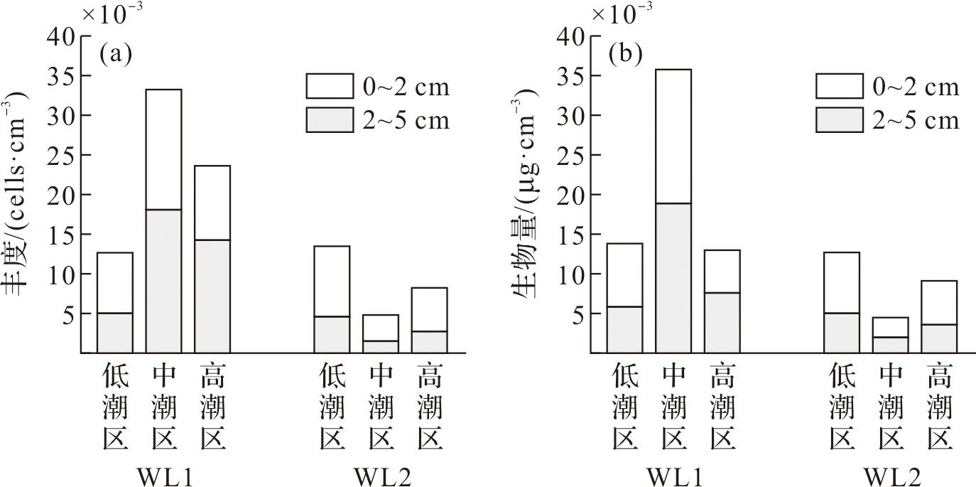 表2 隘顽湾泥滩微藻各类群的平均丰度与生物量Tab.2 Average abundances and biomass among microalgal taxonomic groups in the mudflat of Aiwan Bay |