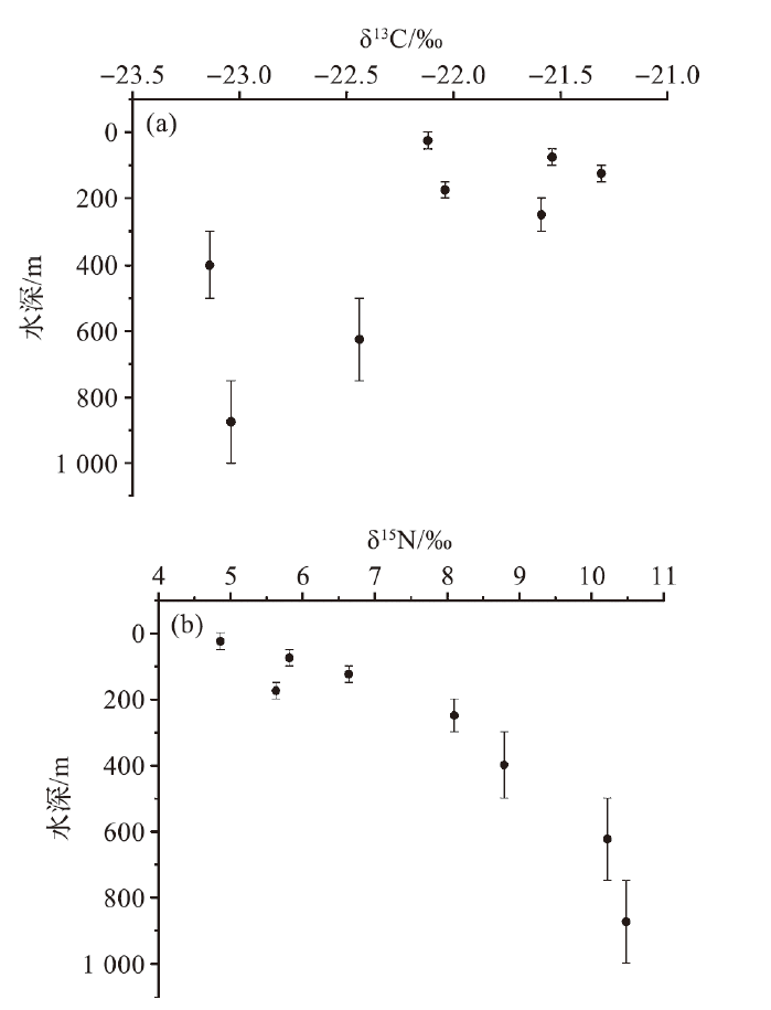 | 站位 | 水深/m | δ13C/‰ | δ15N/‰ |