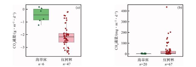 [72,74]。例如,在澳大利亚Missionary Bay,涡度相关-潮位同步观测系统的数据显示,红树林向海草床输出的POC瞬时通量可达44±9 g·m